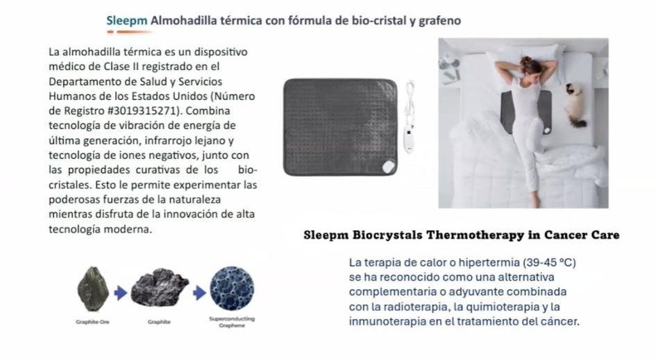 SleepM utiliza tecnología avanzada con biocristales, oro, plata y grafeno, que emiten rayos infrarrojos lejanos para activar la circulación y regenerar las células.